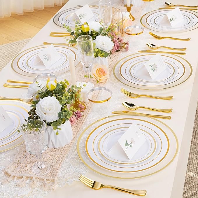 Disposable Charger Plates with Gold Rim, Perfect Table Decor for Party, Wedding