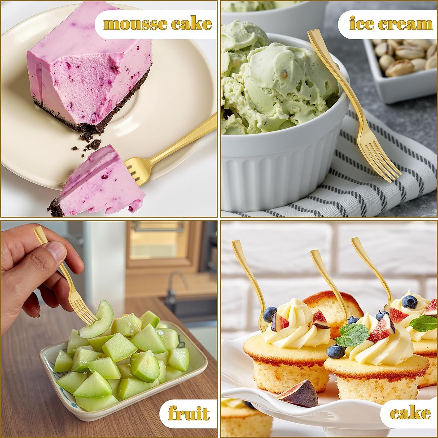 MULTIPURPOSE GOLD MINI DESSERT FORKS – Ideal for parties, events, sampling, and gatherings, these mini gold spoons are perfect for serving desserts, puddings, gelato, ice cream, fruit and cheese, fondue, meat, and cocktail snacks. Use these mini forks for appetizers and various party foods to impress your guests.