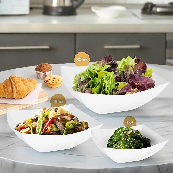 WARM & COLD FOODS: Designed from premium plastic, these fancy plastic bowls are suitable for serving all kinds of foods. Effortlessly serve starters, entrees, and desserts!
